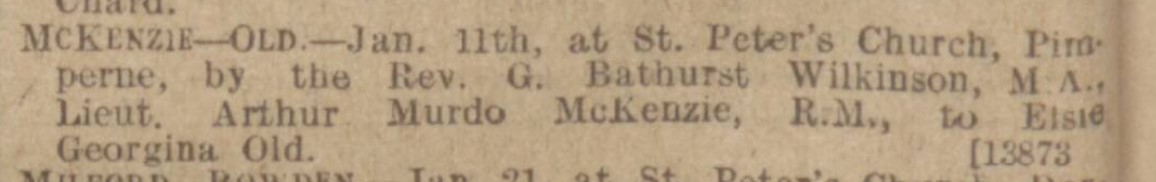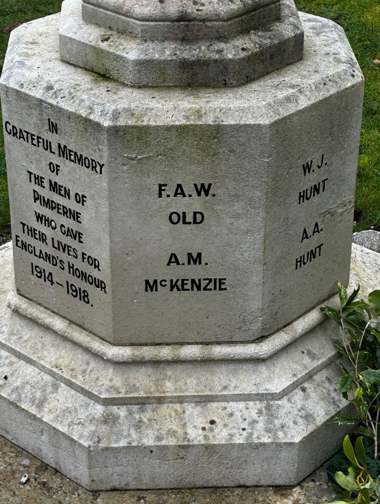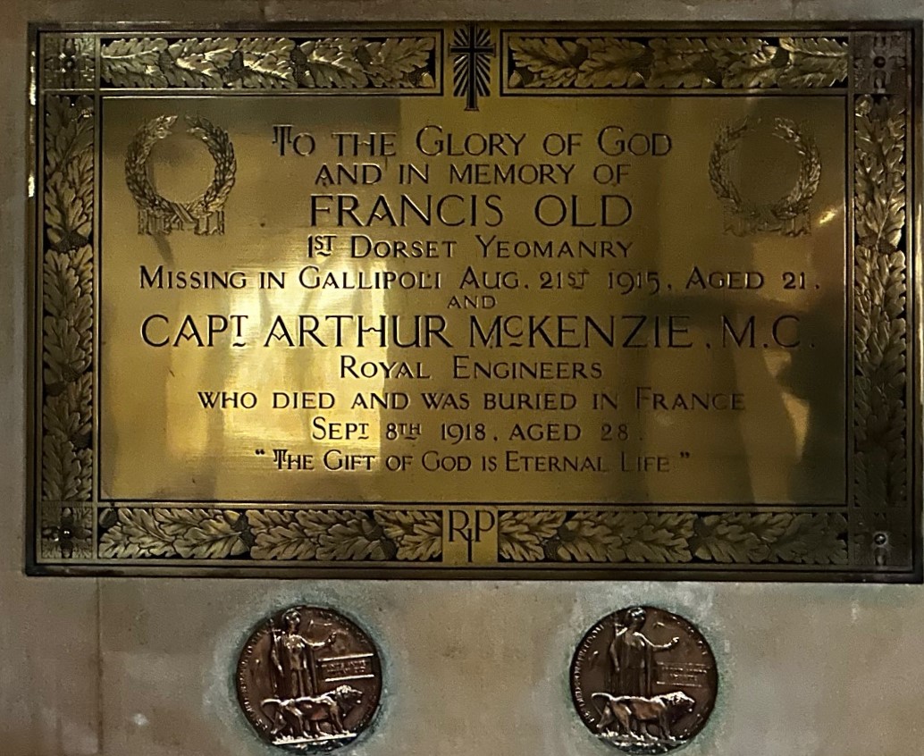 Pimperne Parish Church, a plaque to brothers in law. Arthur Murdo McKenzie married Francis’ sister Elsie in January 1917. He was awarded the Military Cross in the 1918 New Year’s Honours list.